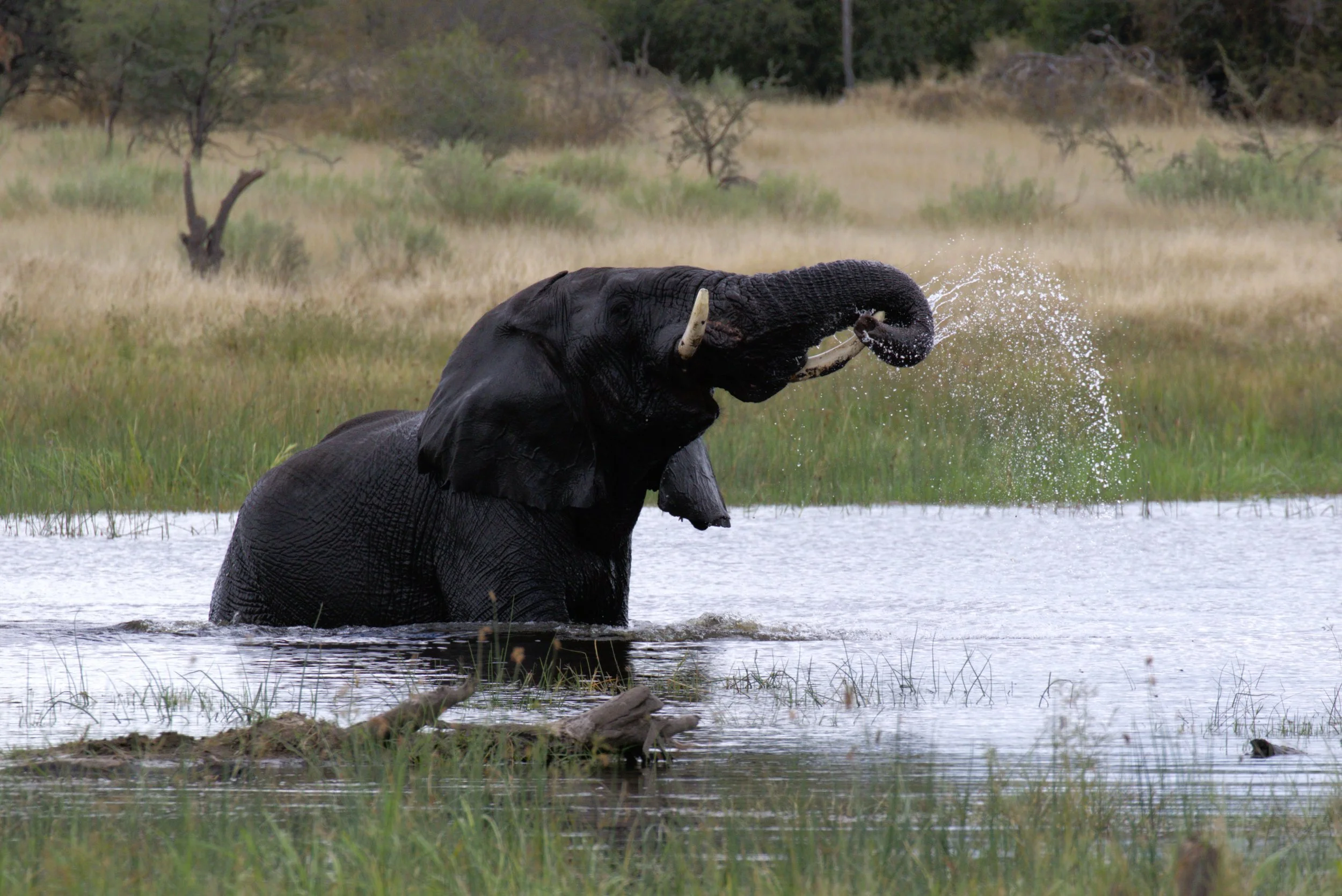 Elephant having a bath and drinking water, Okavango Delta, Botswana